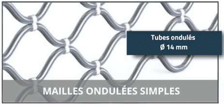 - Tubes ondulés de 14 mm de diamètre en acier galvanisé Z275 reliés par des agrafes spéciales double renfort en acier galvanisé.