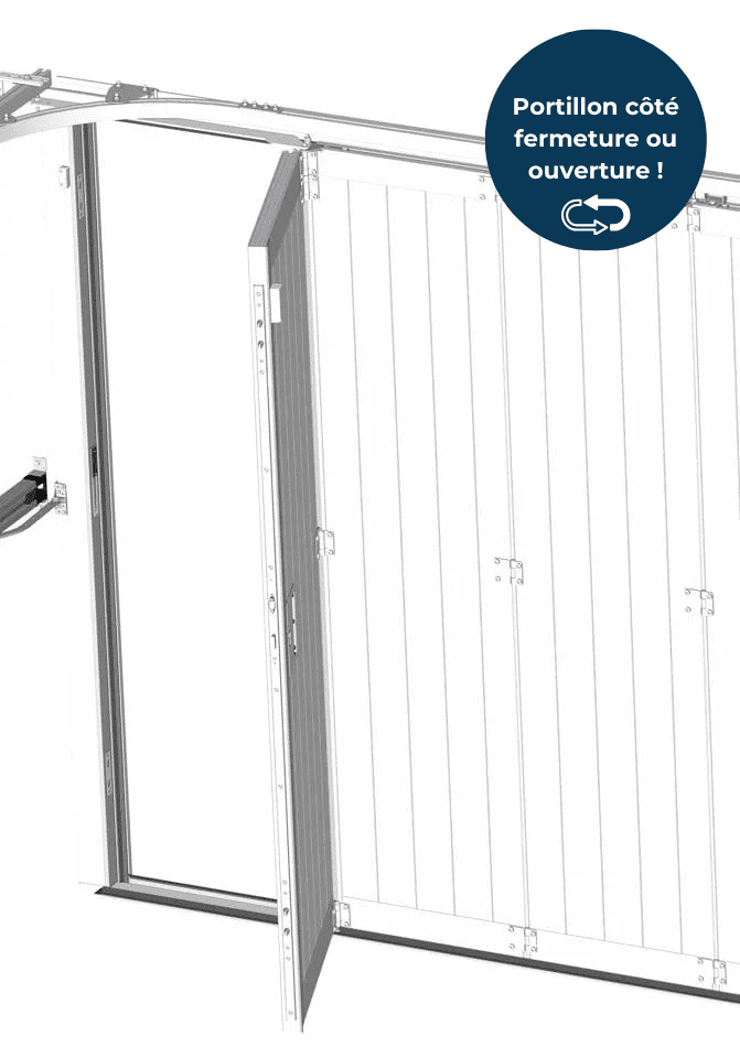 Le portillon est possible côté fermeture ou ouverture (option possible jusqu’à 2300 mm de hauteur) en version manuelle ou motorisée sur votre porte ISOLAT !